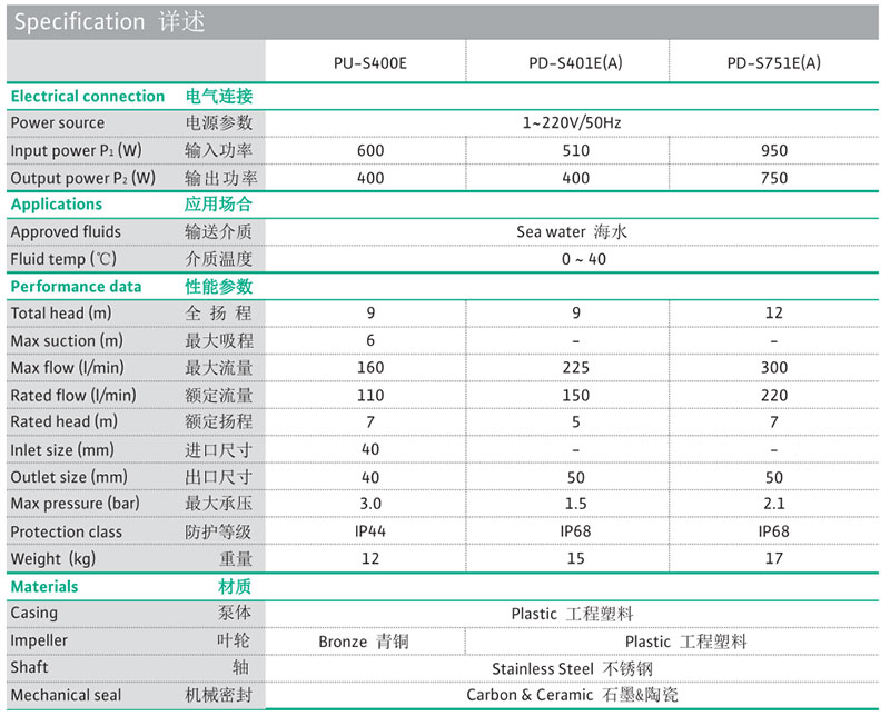特征 通過鋁陽*保護(hù),耐腐蝕 雙向機(jī)封,不泄露 通過浮球開關(guān)自動運(yùn)行(EA系列)