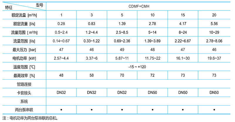 *一臺(tái)CDMF泵為給水泵,*二臺(tái)CMH泵是特別設(shè)計(jì)用于高壓應(yīng)用的高壓泵,本樣本僅提供高壓泵的技術(shù)信息。