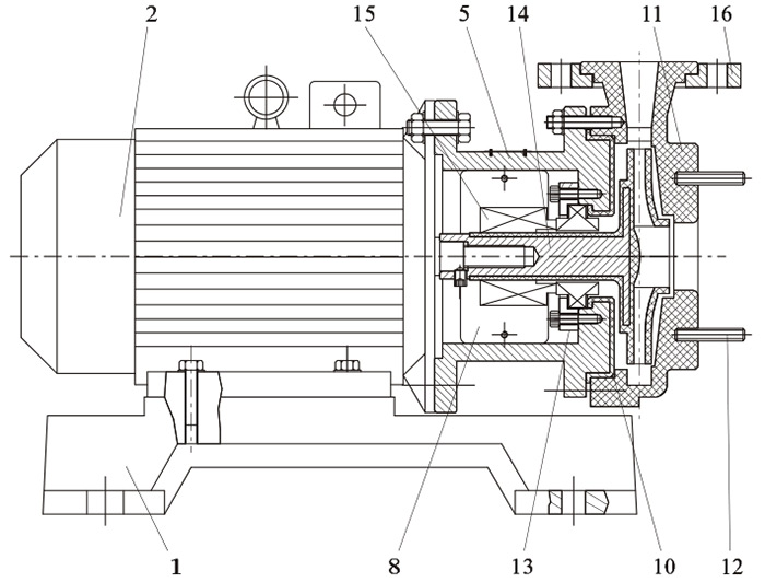 泵過(guò)流部件采用氟塑料(F26、F46),輔助件采用鑄造件(HT200)。