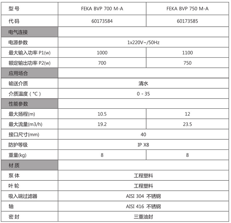 FEKA BVP系列污水潛水泵,是一款強(qiáng)勁有力的排水和排空潛水泵,可排放包含不超過(guò)38mm的固體顆粒; 高品質(zhì)工程塑料材質(zhì),配AISI416不誘鋼耐磨電機(jī)軸, 優(yōu)良的抗腐蝕和抗銹蝕能力;優(yōu)良的電機(jī)冷卻系統(tǒng)允許水泵在未完全浸沒(méi)的情況下運(yùn)行,帶有浮球開(kāi)關(guān),可自 動(dòng)控制水泵啟停;意大利原裝進(jìn)口,品質(zhì)優(yōu)良,24個(gè)月質(zhì)保期。