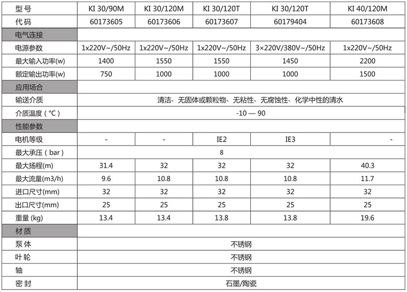 產(chǎn)品特點(diǎn) 不銹鋼泵體、端蓋及轉(zhuǎn)子軸和葉輪,更耐腐蝕,可靠性高,使用壽命長(zhǎng);風(fēng)冷式異步電機(jī),配備高質(zhì)量軸承確保低嗓音和耐久性;帶有埋入式熱保護(hù)器和啟動(dòng)電容,運(yùn)行噪音低;單級(jí)葉輪,高揚(yáng)程,意大利原裝進(jìn)口,24月保修期。