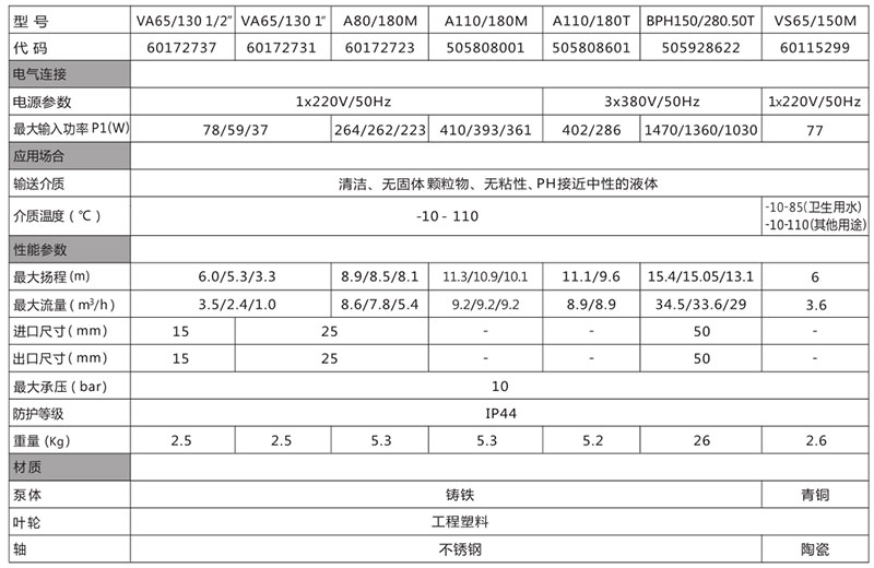 意大利原裝進(jìn)口,配合歐洲能效C級(jí)的**電機(jī)(VA系列),電機(jī)擁有熱保護(hù)器,支持三速運(yùn)轉(zhuǎn),符合CCC標(biāo)準(zhǔn) (VA系列和A系列);屏蔽泵運(yùn)行噪音低,安裝靈活,泵體電泳處理,耐腐蝕性好;VS系列泵體青銅材質(zhì),符合衛(wèi)生用水要求;良好的水力性能,24個(gè)月質(zhì)保期。